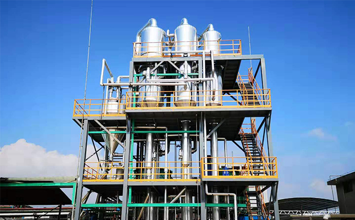 三效蒸发器主要由相互串联的三组蒸发器、冷凝器 、盐分离器和辅助设备等组成 。