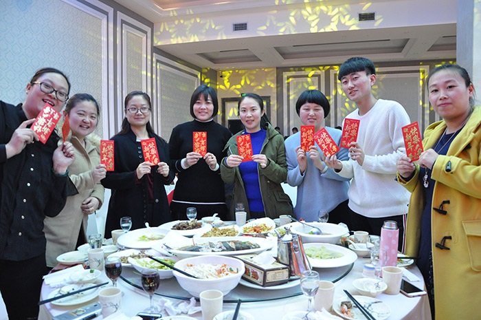 (董事长为集团家人们一一送达新春祝福并发放红包)